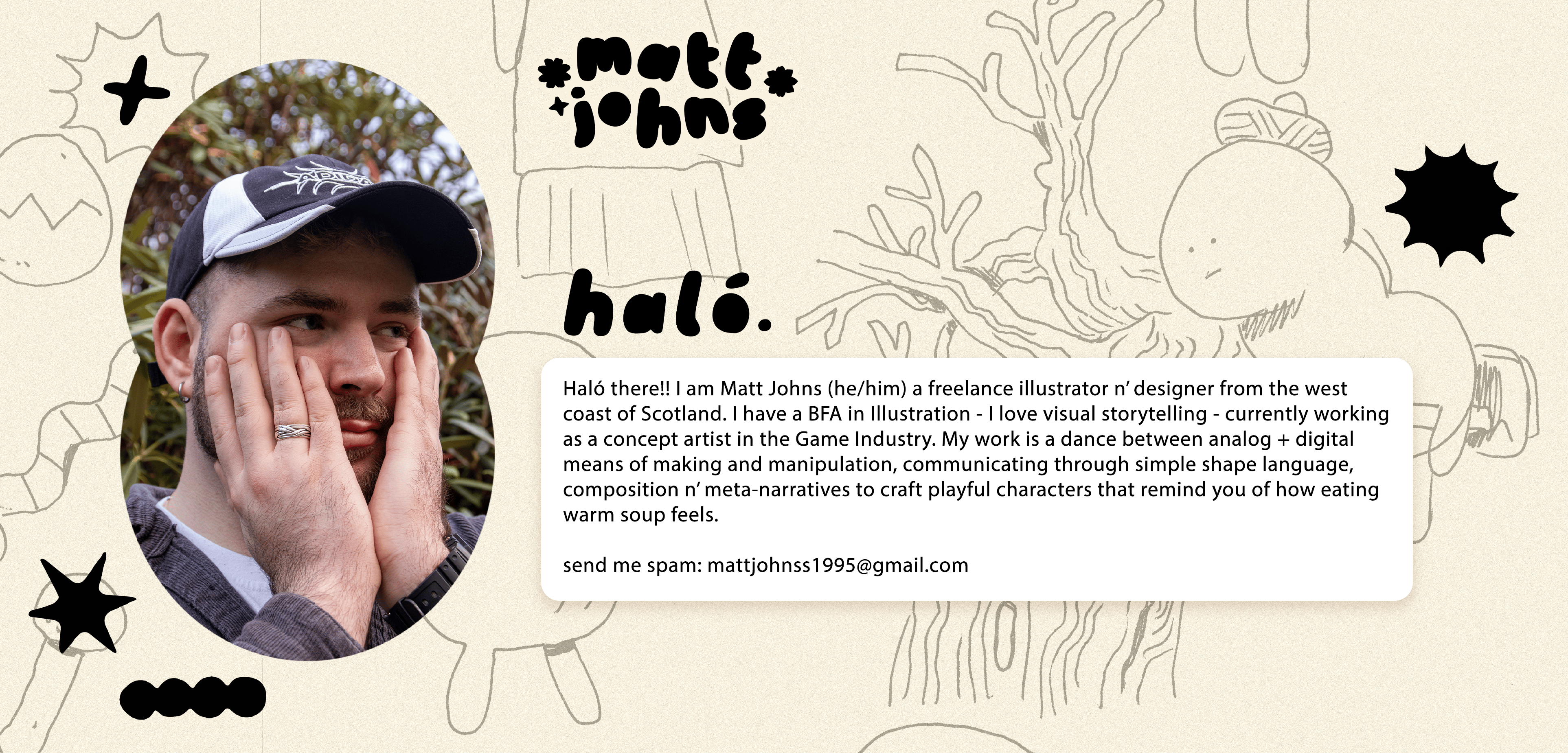 using texture aids in elevating my work, it adds context to my designs - combining them helps create contrast and generally helps to ground my characters in more believable worlds.